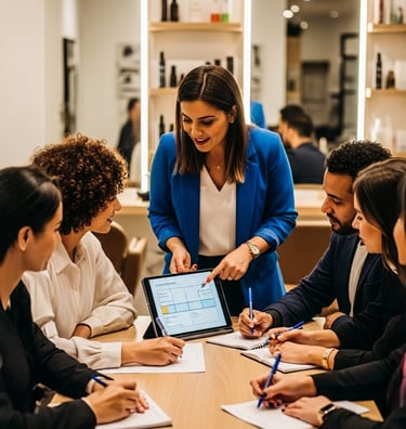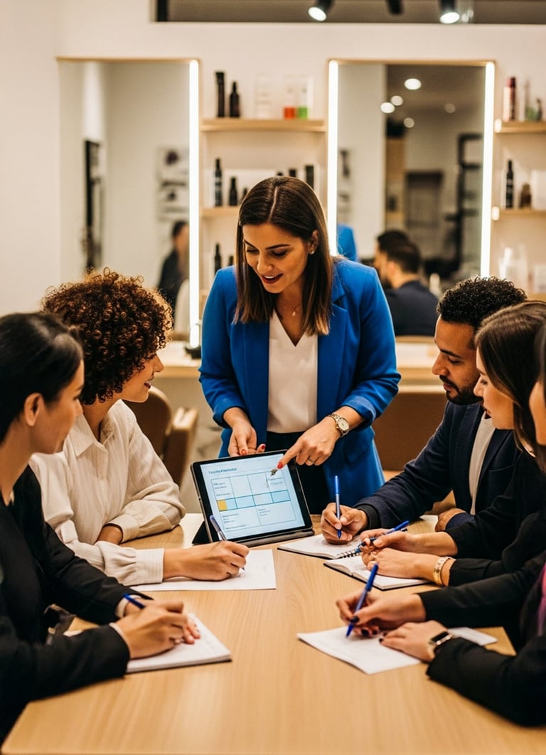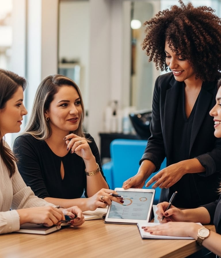 O sucesso de um salão é reflexo direto da qualidade e do alinhamento de sua equipe. Nossos treinamentos corporativos são desenhados para desenvolver as habilidades essenciais do seu time, transformando cada colaborador em um promotor do seu negócio.